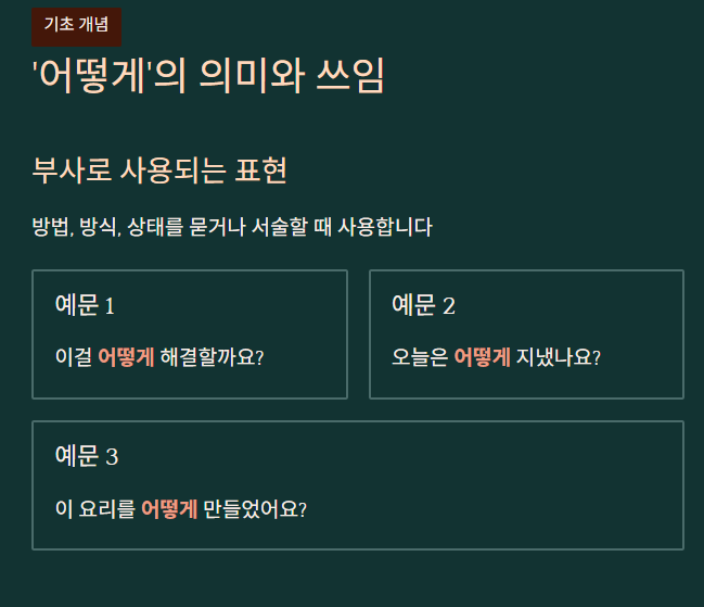 방법, 방식, 상태 등을 묻거나 서술할 때 쓰입니다.