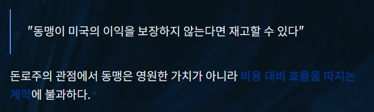 - 국가 간 신뢰나 역사적 동맹보다