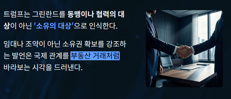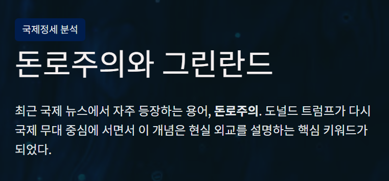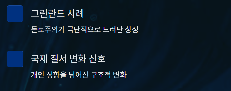 - 그린란드는 돈로주의가 가장 극단적으로 드러난 상징적 사례