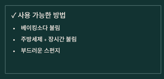 스텐에는 효과적이며 코팅·양은은 과량 사용 주의가 필요합니다.