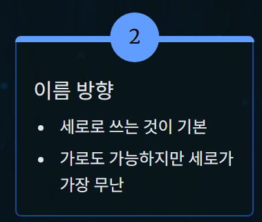 - 가로로 써도 큰 문제는 없지만, 공식적인 자리에서는 세로가 가장 무난