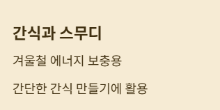 겨울철 간단한 간식이나 에너지 보충용 스무디에 활용 가능