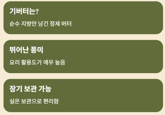 최근 건강식품으로 주목받는 기버터(Ghee Butter)는 단순한 버터가 아닌, 건강과 요리에 활용 가능한 정제 버터입니다.