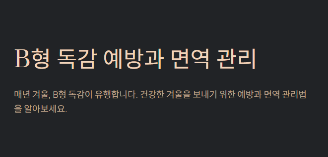이번 글에서는 B형 독감의 특징, 주요 증상, 예방 방법, 그리고 면역력 보조를 위한 건강 관리법까지 자세히 정리합니다.