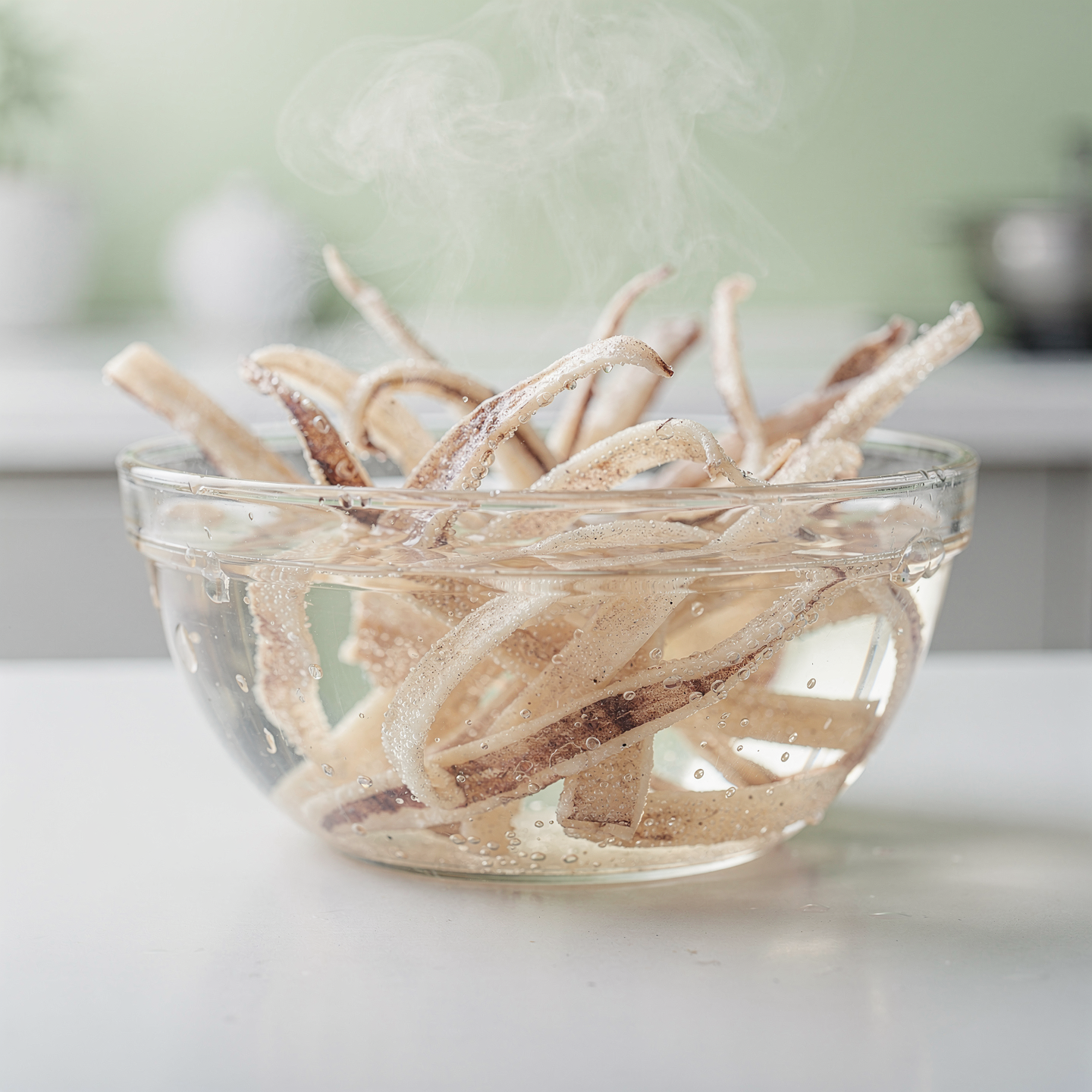 - 딱딱하면 뜨거운 물 1~2분 데치기 → 부드러워짐