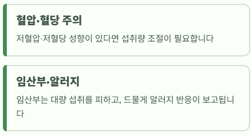 대부분 무난하지만 과다 섭취나 체질에 따라 불편이 나타날 수 있습니다.