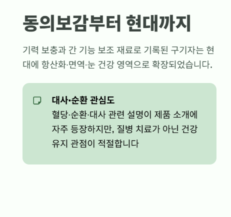 환절기나 스트레스 누적으로 체력이 떨어질 때 보양 차나 분말을 꾸준히 섭취하는 소비층이 있습니다. 전통적으로는 간(肝)과 신(腎)을 보조하는 식재료로 분류되어 왔습니다.
