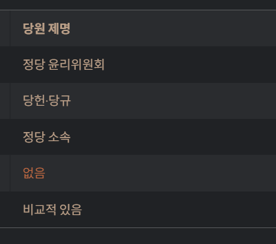 대부분은 정당 윤리위원회 차원의 당원 제명을 의미한다.