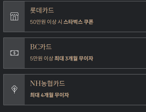 - NH농협카드: 최대 4개월 무이자