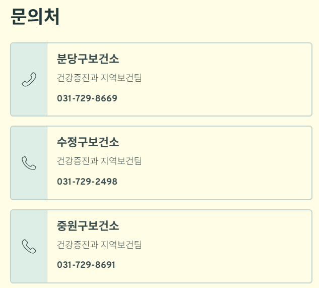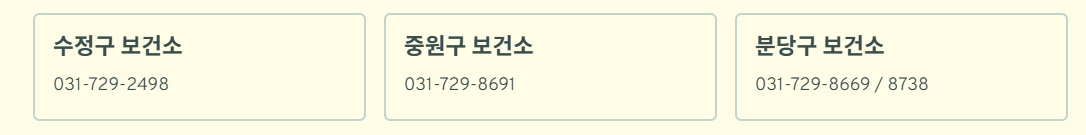 따라서 가장 정확한 방법은 성남시 보건소 담당부서 문의였습니다.