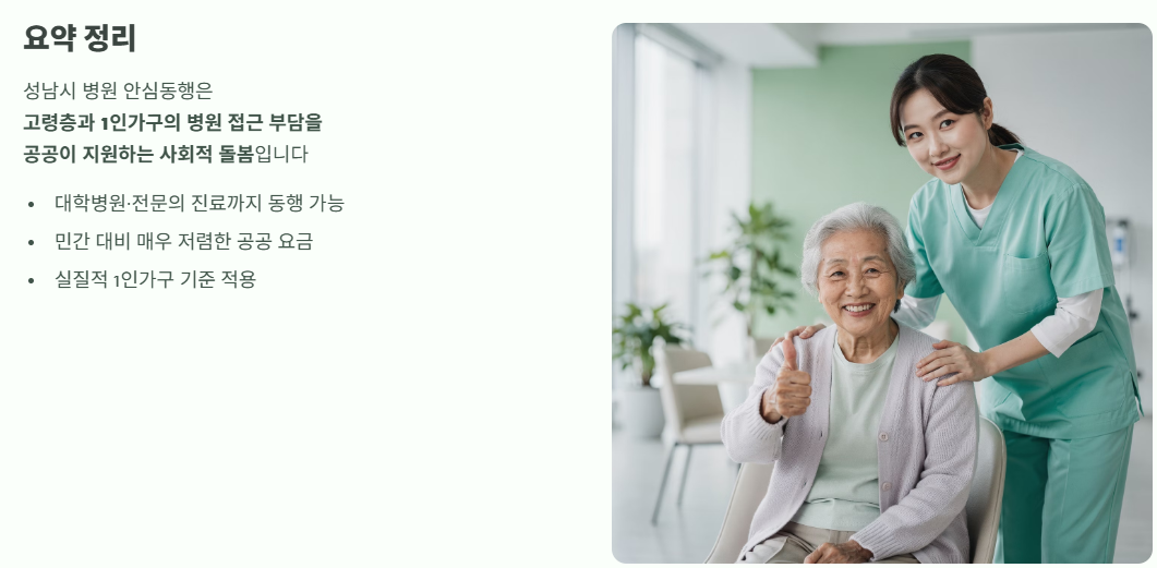 성남시 병원 안심동행 서비스는 고령층과 1인가구의 병원 접근 부담을 공공이 대신 지원하는 사회적 돌봄 서비스입니다.