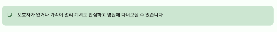 진료 과정에서 수납·약국·진료실 이동까지 함께하며, 서비스 종료 후 집 앞까지 동행해주는 방식입니다.