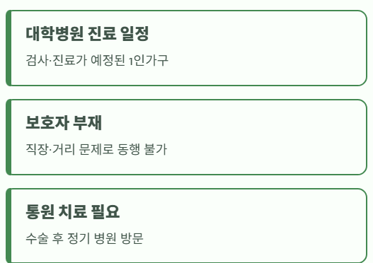 보호자 부재, 가족 분리 거주, 직장·교육 등으로 동행이 어려운 경우에 실질적인 대안이 됩니다.