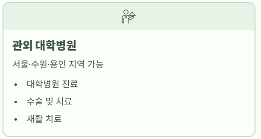 ✔ 관외 병원도 일부 가능(서울·수원·용인)