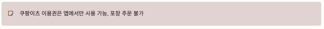 쿠팡이츠 이용권은 앱에서만 사용 가능하며 포장 주문은 지원되지 않는다.