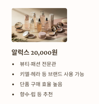 - 알럭스(뷰티·패션) : 20,000원