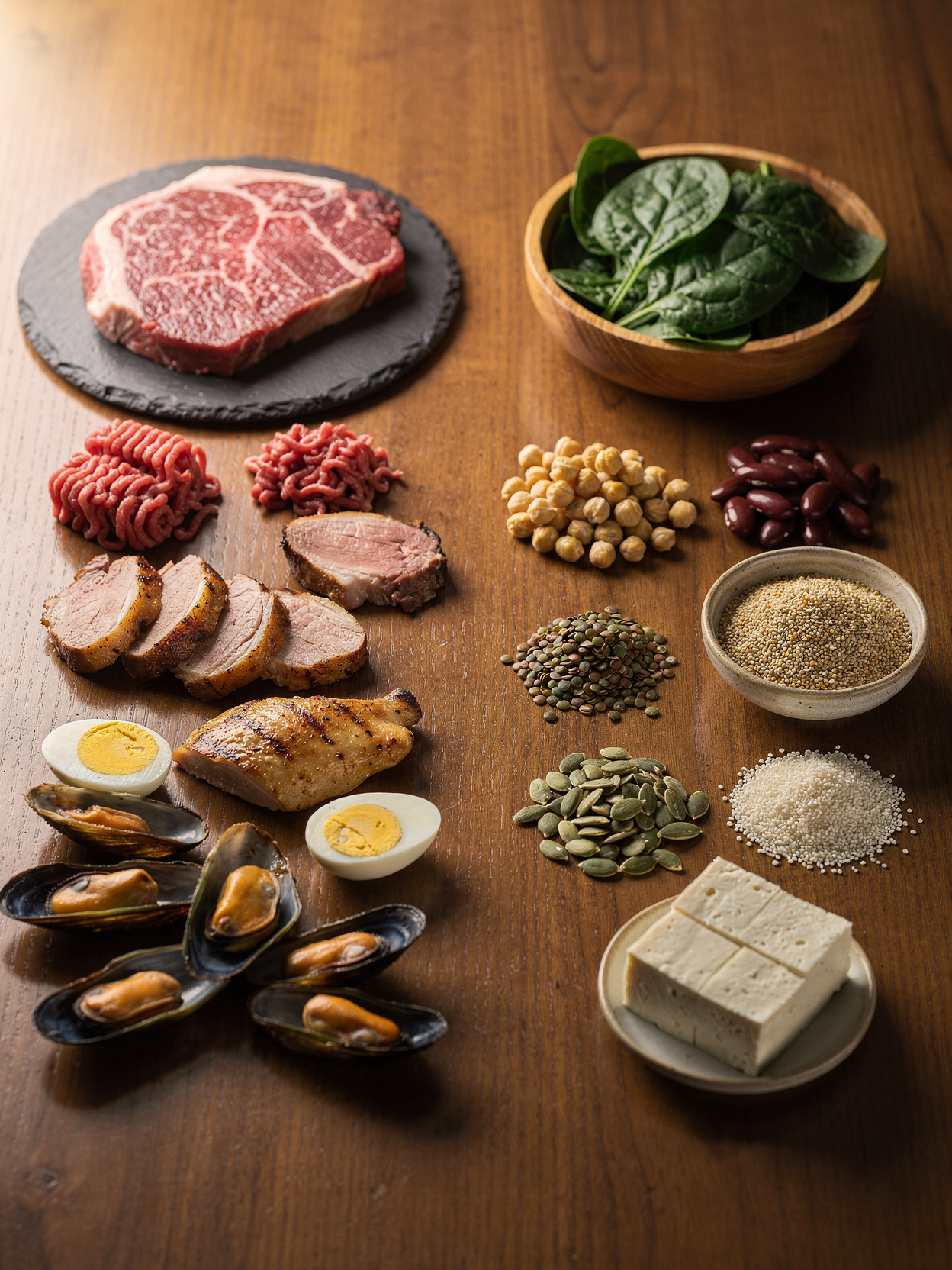 철분은 *동물성(헴 철분)*과 *식물성(비헴 철분)*으로 나뉘며, 각각 흡수율과 특징이 다릅니다.