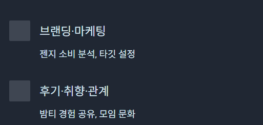 밤티 = 취향 + 사교 + 후기 콘텐츠 코드