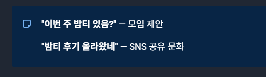 ✔ 후기/취향/관계 → 밤티
