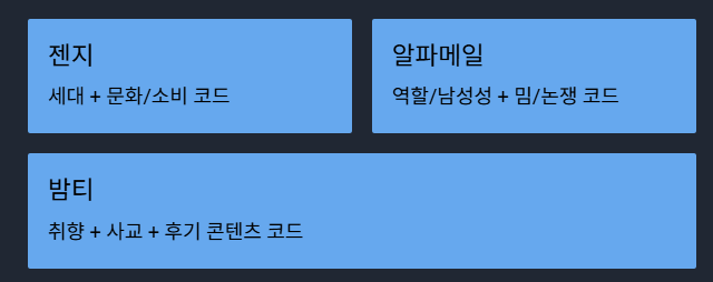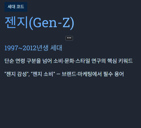 세대 + 취향 + 밈 + 소비 + 사회적 역할