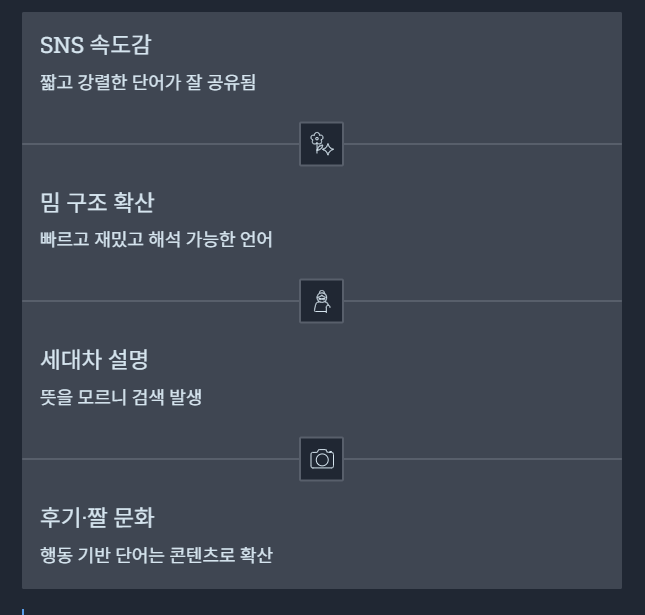 왜 이런 단어가 유행할까 — 세대 + SNS + 밈 + 압축 언어