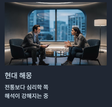 요즘 해몽은 전통보다 심리학 쪽 해석이 강해지는 중입니다.