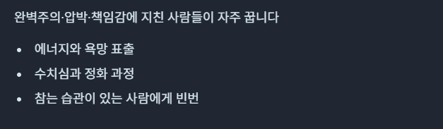 그래서 이런 꿈은 완벽주의·압박·책임감에 지친 사람들이 자주 꾸는 편입니다.