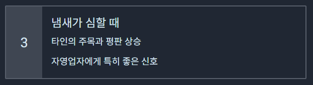 냄새는 타인의 시선, 평판, 평가, 주목이 따라붙는다는 의미가 있기 때문입니다.