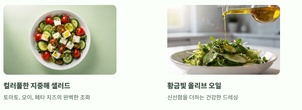 버터 대신 올리브오일을 사용하여 생선·육류·파스타·채소·빵과 조합하는 방식이며, 이는 심혈관 건강·항염·항산화와 연관되어 꾸준히 연구되고 있습니다.
