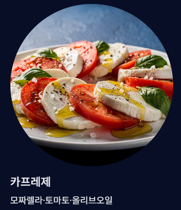 ✔ 카프레제(모짜렐라 + 토마토 + 올리브오일)