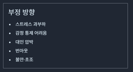 나쁜 방향 → 감정 폭발, 스트레스, 불안, 통제 어려움