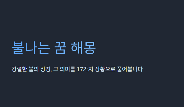 아침에 눈을 떴는데 꿈속에서 불이 크게 났던 장면이 남아 있다면 대부분 바로 검색부터 하게 됩니다.