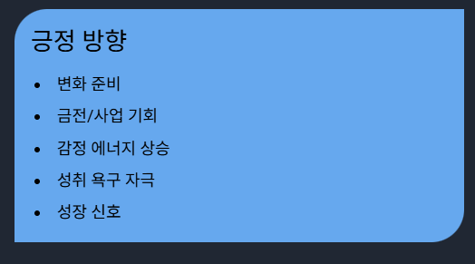 좋은 방향 → 변화의 기회, 재물, 창조적 에너지, 성취