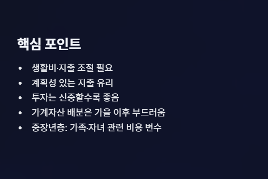 ✔ 중장년층은 가족·자녀 관련 비용 변수 있을 수 있음