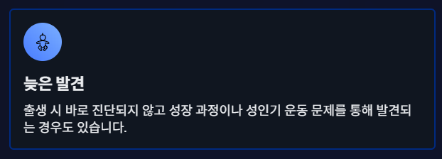 출생 시 바로 진단되지 않고 성장 과정이나 성인기 운동 문제를 통해 발견되는 경우도 있습니다.