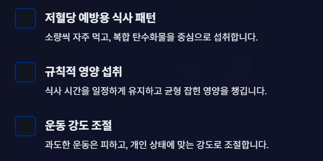 - 저혈당 예방용 식사 패턴