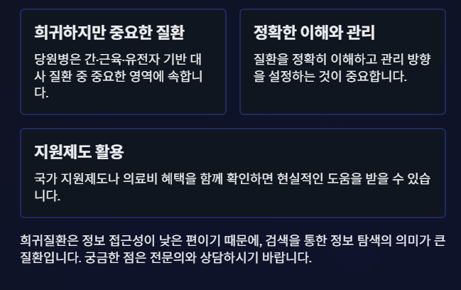 당원병은 흔하지 않지만 간·근육·유전자 기반 대사 질환 중 중요한 영역에 속합니다.