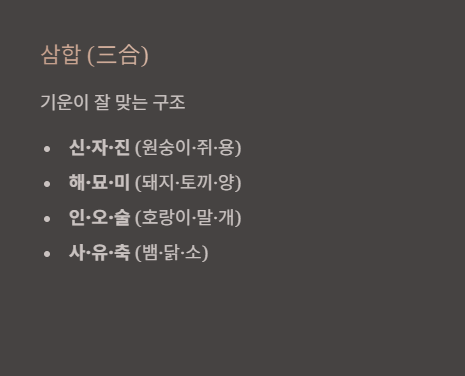 (신·자·진), (해·묘·미), (인·오·술), (사·유·축)