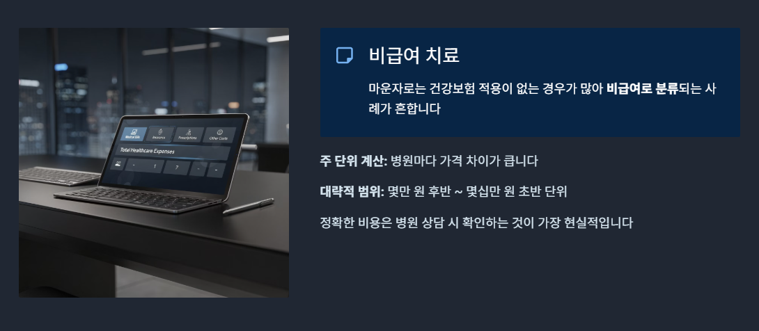 마운자로는 건강보험 적용이 없는 경우가 많아 비급여로 분류되는 사례가 흔하며,