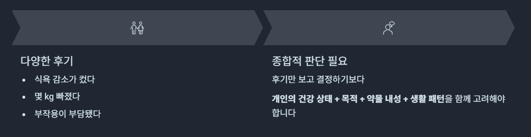건강 상태 + 목적 + 약물 내성 + 생활 패턴을 함께 봐야 한다는 점이 중요합니다.