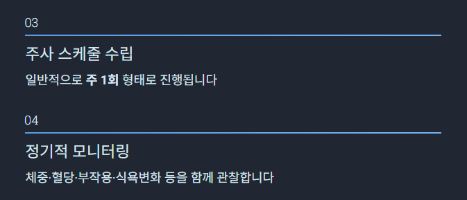 체중·혈당·부작용·식욕변화 등을 함께 봅니다.