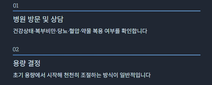병원 상담을 통해 자신의 건강 상태와 목적을 먼저 확인하는 것이 안전하며,