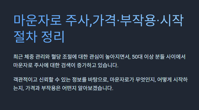 비슷하게 고민하는 분들이 많아 마운자로가 무엇인지, 실제로 어떻게 시작하는지, 가격은 어느 정도인지, 부작용과 주의점은 무엇인지를 정리합니다.