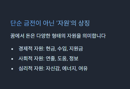 다만 그 자원이 꼭 현금 형태일 필요는 없습니다. 중요한 건 꿈의 흐름 + 감정 + 디테일입니다.