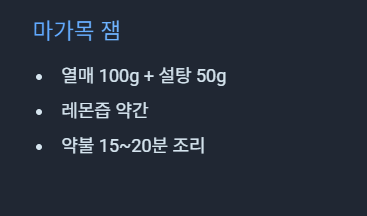 - 방법: 마가목과 설탕, 레몬즙을 냄비에 넣고 약불에서 15~20분 끓여 잼으로 만듭니다.
