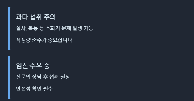 - 과다 섭취 주의: 설사, 복통 등 소화기 문제 발생 가능