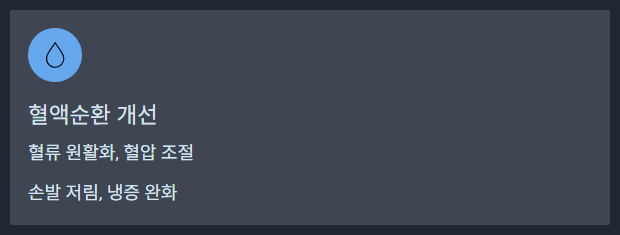 - 효과: 피로 해소와 혈액순환 보조