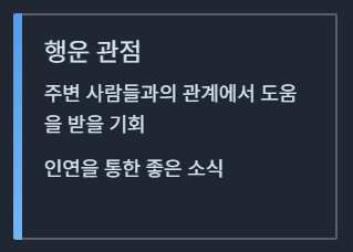 - 행운 관점: 소소한 즐거움이나 행복, 기분 좋은 일이 생길 수 있는 시기를 의미합니다.