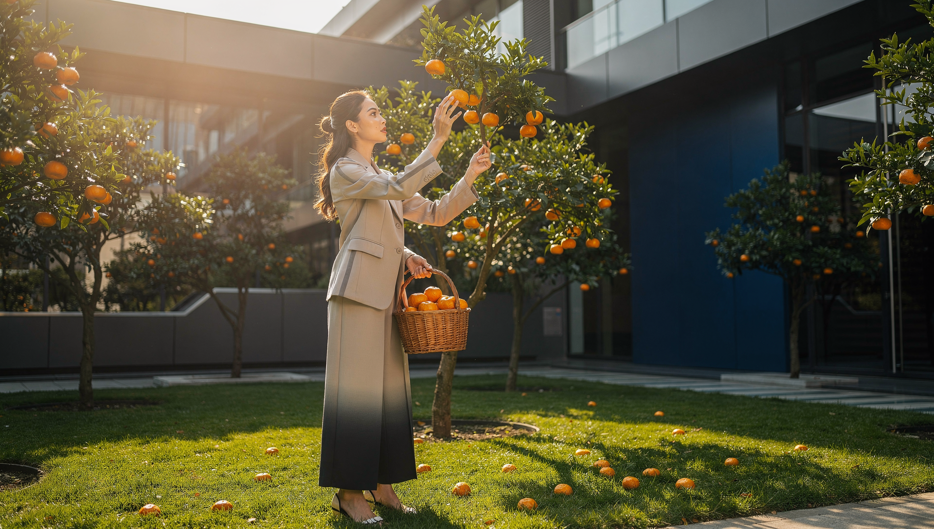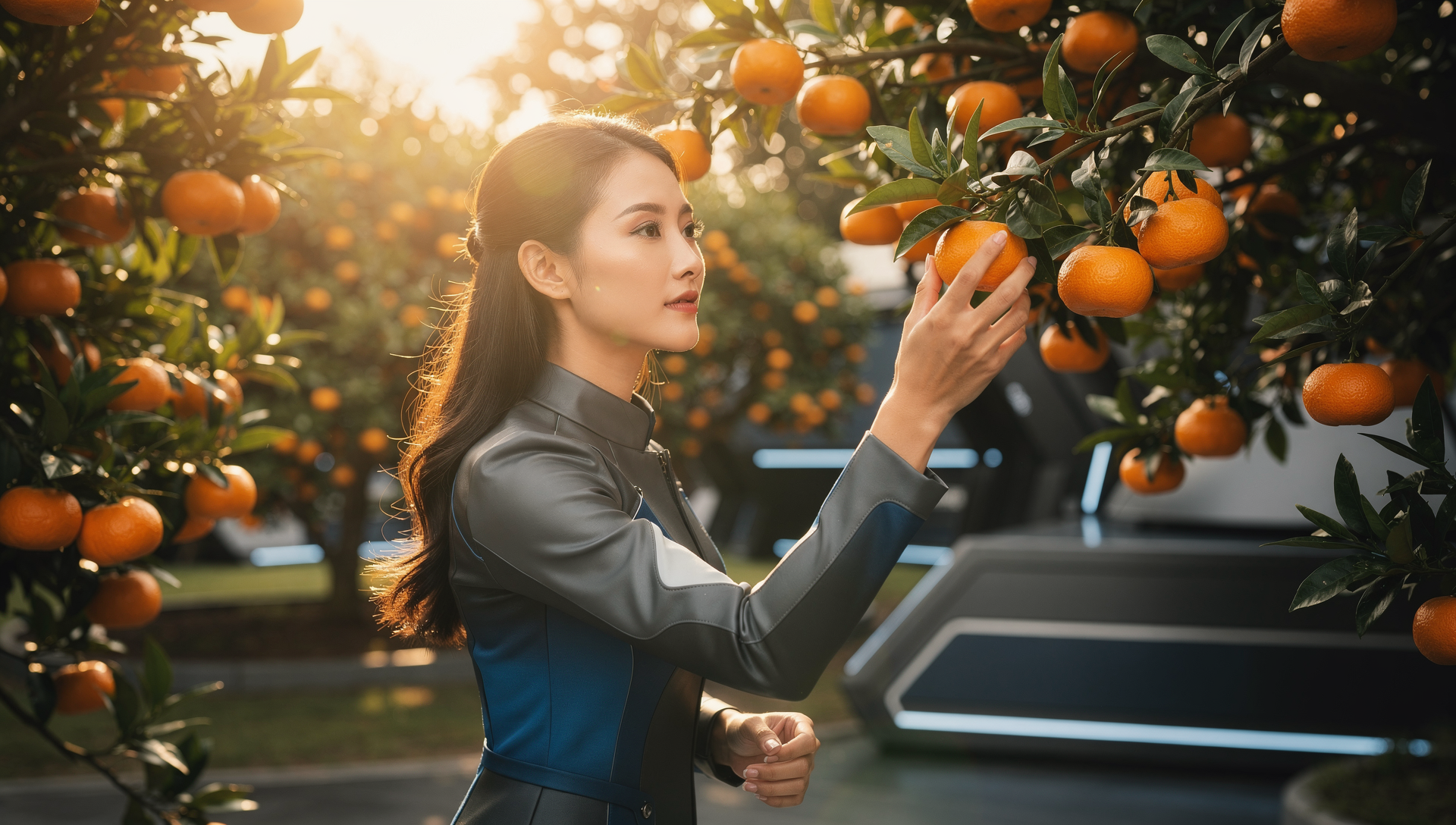 [이미지4 추천]: 나무에서 귤을 잡거나 채가는 모습