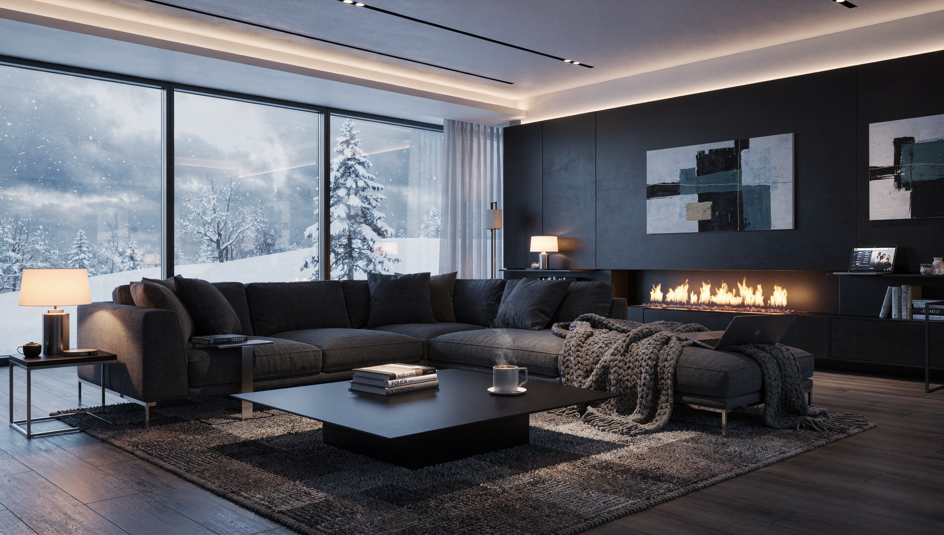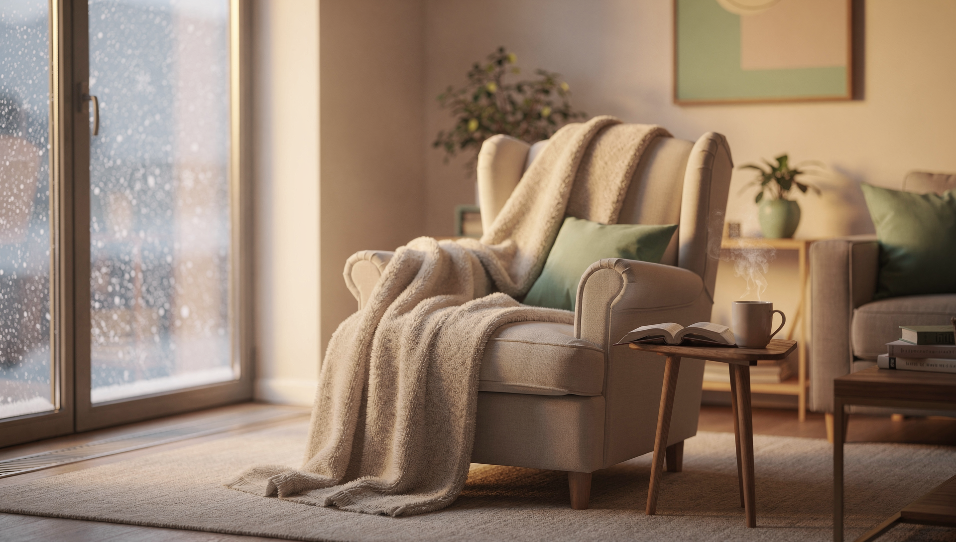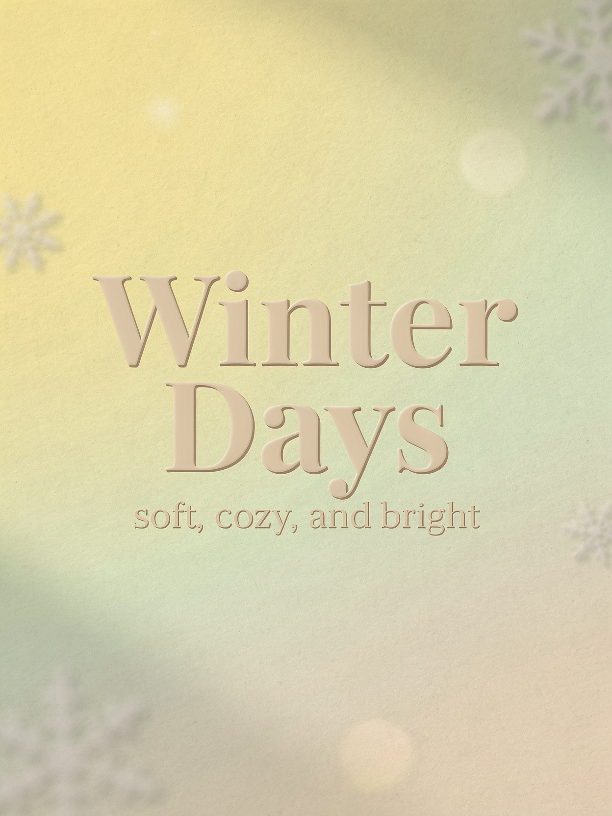 카드에는 글과 함께 눈송이, 차, 난로, 담요 등 겨울 이미지를 넣어 따뜻한 분위기를 만듭니다.